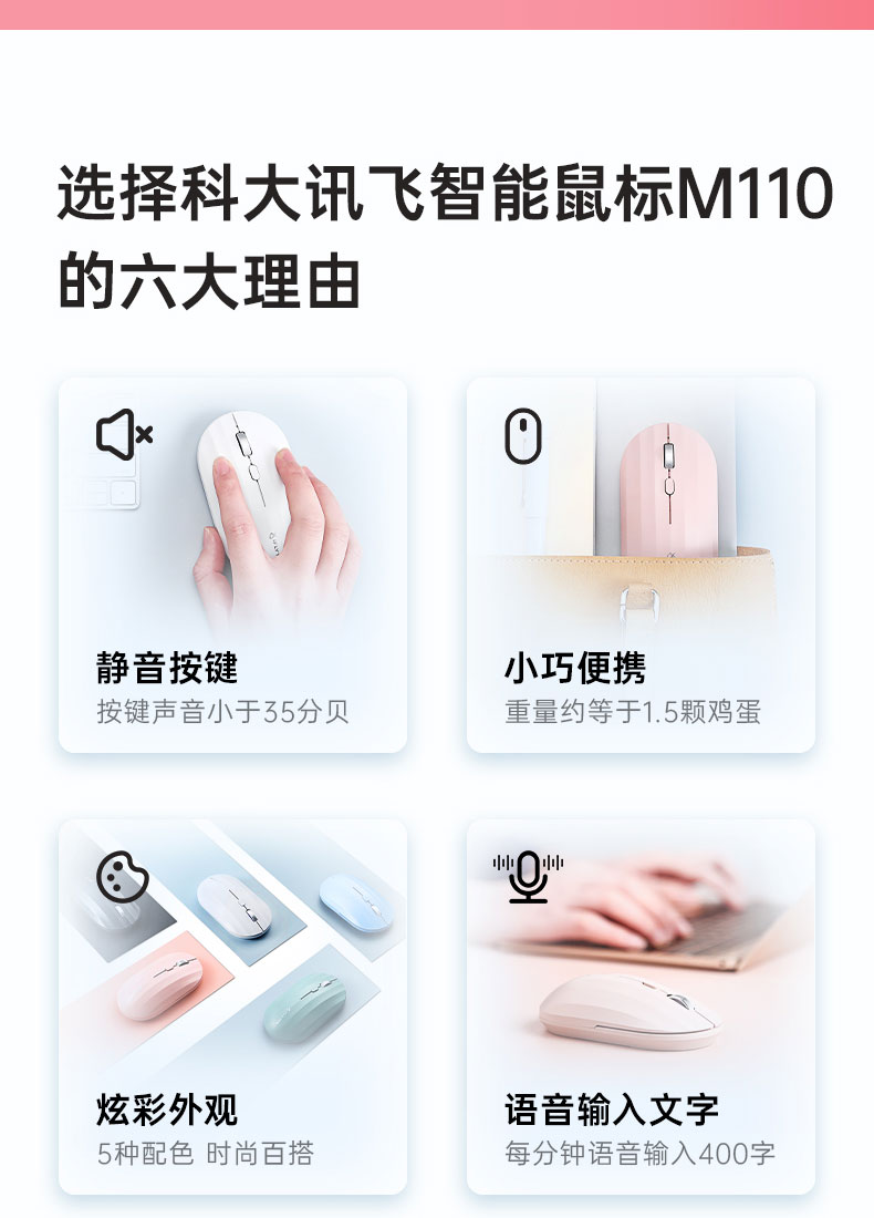 智能語音無線鼠標(biāo)M110 黑色 白色 藍(lán)色 粉色