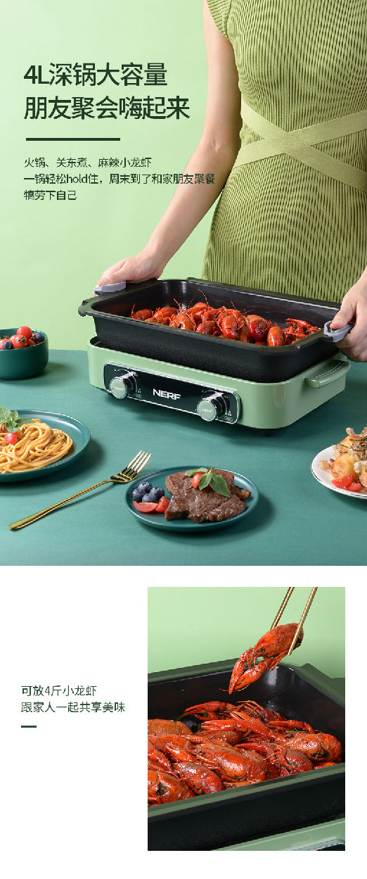 煎烤炒煮焗悶多功能,雙鍋雙控,大容量