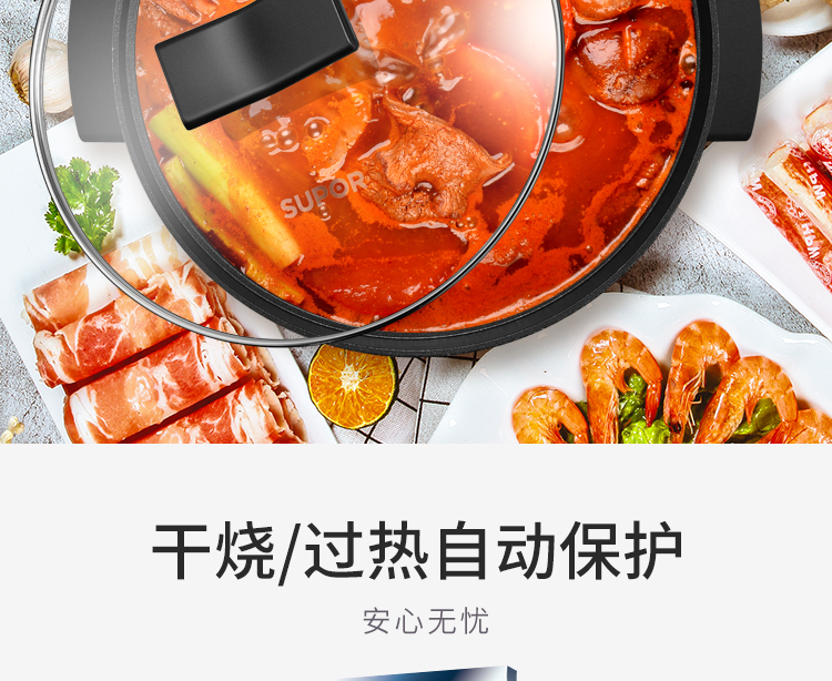 蘇泊爾(SUPOR)電火鍋家用電鍋多功能煎烤機電煮鍋燉煮燜涮多用途鍋韓式電熱鍋4升大容量網紅不粘鍋 H28YK12