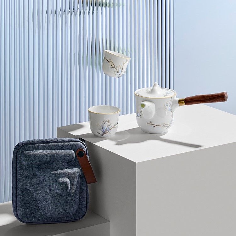 瑪戈隆特 4頭進(jìn)博旅行茶具進(jìn)博玉蘭-黃金琺瑯彩